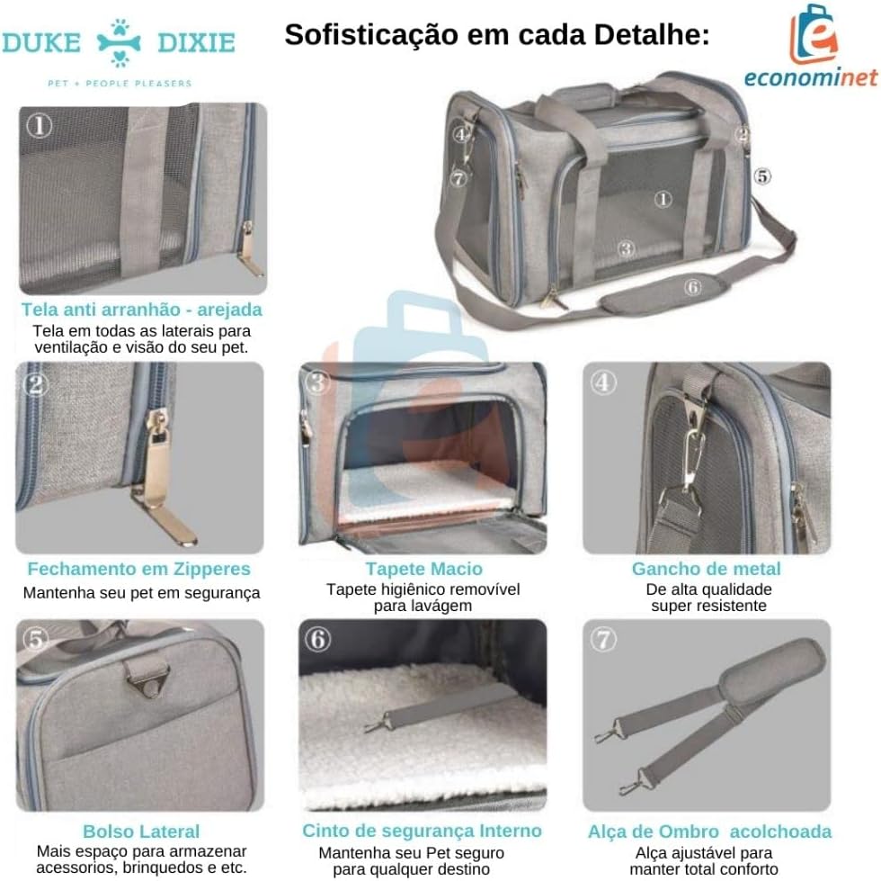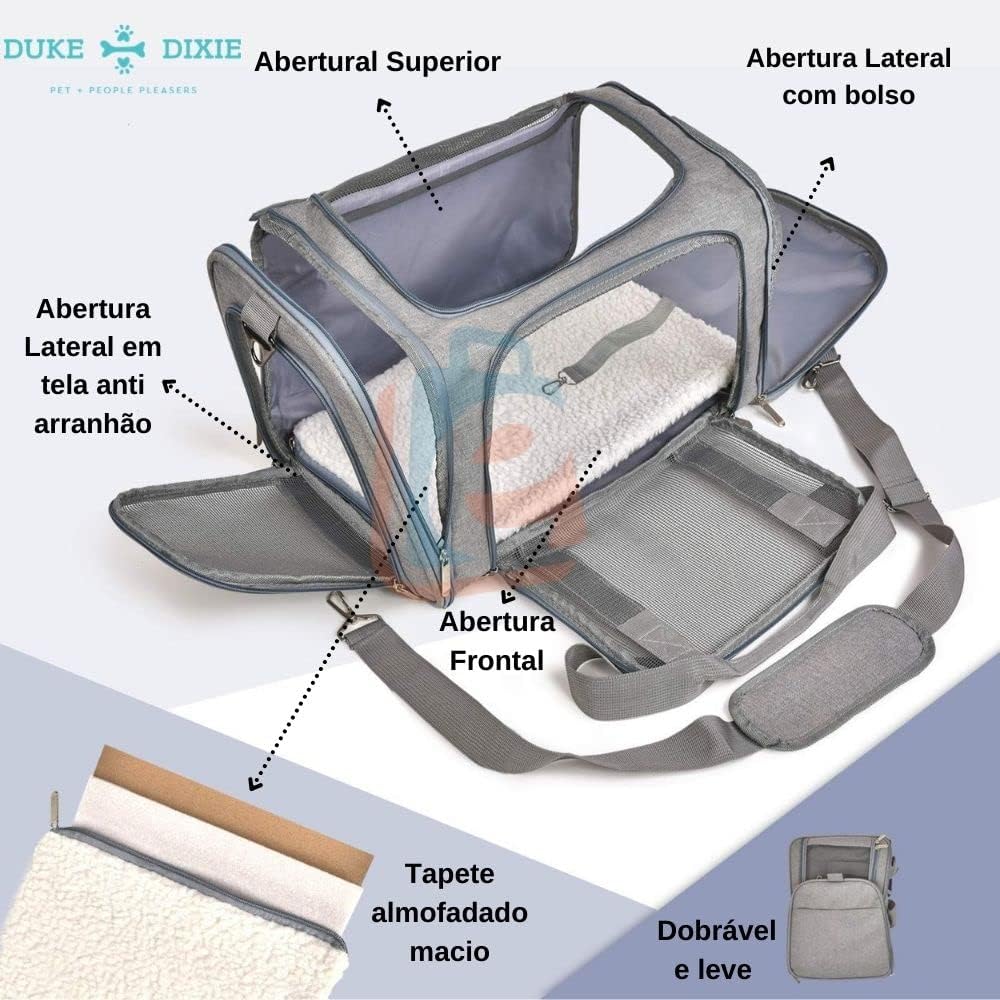 ✈️ Acomodações para viagem – Certificada para embarque na cabine de aviões, compatível com a maioria das companhias aéreas.