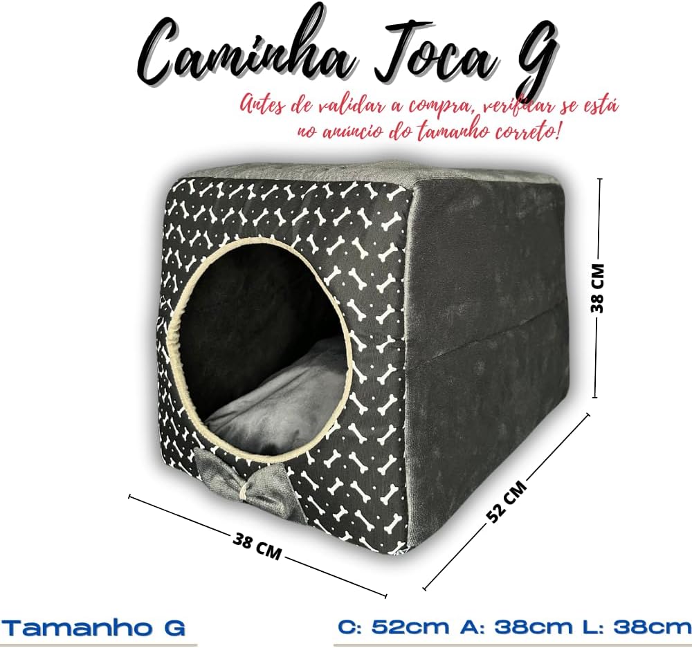 Os produtos da Caramelo Dreams são fabricados com o intuito de dar aquele detalhe para o seu lar e trazer aconchego para o seu petzinho, prezamos pelo conforto e qualidade do seu petzinho. Fabricamos tocas nos tamanhos P, M e G se não achou o anúncio dos outros tamanhos, é só chamar no chat que enviamos o anúncio para você! POR FAVOR, ATENTE-SE AO TAMANHO DA TOCA EM RELAÇÃO AO SEU PET! TOCA 3 EM 1 Modelo de cama para usar em todas as estações do ano, no inverno como toca e no verão como caminha, além de lindo esse modelo é super versátil, acompanha uma almofada removível que pode ser utilizada separada e com fundo impermeável. Todas as medidas são aproximadas Tamanho P Comprimento: 37cm Largura: 27cm Altura: 27cm Tamanho M Comprimento: 42cm Largura: 32cm Altura: 32cm Tamanho G Comprimento: 52cm Largura: 38cm Altura: 38cm Contém: 1 – Toca 01 – Cama 01 – Almofada removível