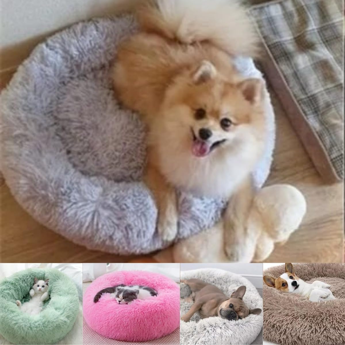 Cama Redonda: Caminha donut nuvem pet pelúcia redonda para cachorros e gatos, com fundo antiderrapante e impermeável.