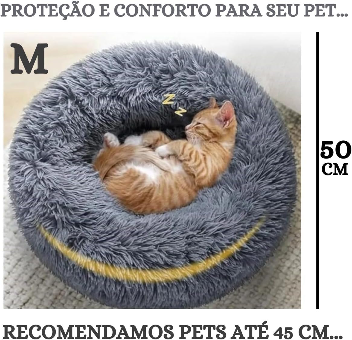 Apresentamos a cama perfeita para seu animal de estimação, combinando conforto luxuoso e praticidade. Fabricada com material de pelúcia premium ultra-macia, oferece um ambiente aconchegante e relaxante para cães e gatos. O fundo antiderrapante e impermeável garante que a cama permaneça firme no lugar e protegida contra acidentes, proporcionando maior durabilidade. O design circular com bordas elevadas cria um espaço acolhedor onde seu pet pode se aninhar e descansar confortavelmente. A pelúcia densa e macia proporciona isolamento térmico ideal, mantendo seu animal aquecido no inverno e confortável no verão. Fácil de limpar e ideal para todos os tamanhos de pets, esta cama é perfeita para proporcionar um sono tranquilo e relaxante para seu companheiro de quatro patas. ## Descrição ## Apresentamos a cama perfeita para seu amigo de quatro patas: a caminha Nuvem DONUT. Com design exclusivo e materiais de alta qualidade, a cama Nuvem DONUT oferece o máximo de conforto e segurança para cães e gatos e outros pets de pequeno porte OU FILHOTES. Feita com uma base macia, acolchoada E PELUCIADA, fundo impermeável e antiderrapante, a caminha nuvem é revestida por PELUCIA e resistente, que garante o conforto e a durabilidade do produto. Além disso, a cama possui bordas elevadas que proporcionam aconchego e proteção, fazendo com que seu animalzinho se sinta seguro, confortável e relaxado, DÁ A SENSAÇÃO DE PROTEÇÃO PARA SEU PET. A caminha Nuvem DONUT é fácil de limpar e pode ser lavada na máquina, que a torna ideal para o uso diário. O tamanho compacto da cama permite que ela seja colocada em qualquer ambiente, seja em um canto do quarto ou em um espaço reservado na sala de estar. Não perca a oportunidade de oferecer o melhor em conforto e bem estar para o seu pet. Proporcione um descanso tranquilo e confortável para seu melhor amigo. Super aconchegante e macia Ajuda melhorar o sono e o humor do seu Pet Seu Pet irá amar A caminha foi desenvolvida para trazer beleza, conforto e praticidade em um só produto. Enchimento em fibra que não retém umidade, proporciona maior conforto e bem-estar ao seu Pet A Caminha é muito macia e super confortável, seus pelinhos dão um charme especial. CONTÉM: 1 cama INFORMAÇÕES TÉCNICAS: TAMANHO P – 40 x 40 x 12 (COMPRIMENTO X LARGURA X ALTURA) TAMANHO M – 50 x 50 x 12 (COMPRIMENTO X LARGURA X ALTURA) TAMANHO G – 60 x 60 x 12 (COMPRIMENTO X LARGURA X ALTURA) COMPOSIÇÃO: PLÁSTICO PP e ALGODÃO/ QUANTIDADE 1 UNIDADE Indicação: Para Pets com até 35cm NO TAM P Indicação: Para Pets com até 45cm NO TAM M Indicação: Para Pets com até 55cm NO TAM G Enchimento: Anti-alérgico IMAGENS MERAMENTE ILUSTRATIVAS. AS TONALIDADES PODEM SOFRER PEQUENAS VARIAÇÕES DE ACORDO COM A LUMINOSIDADE DO LOCAL.