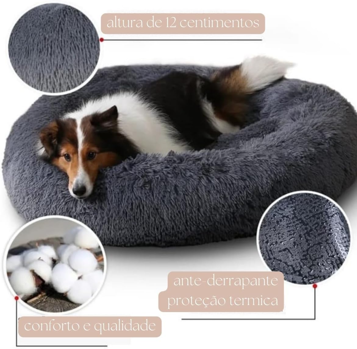 DESIGN ACONCHEGANTE: Formato circular com bordas elevadas que criam um ninho acolhedor para seu animal descansar com total conforto