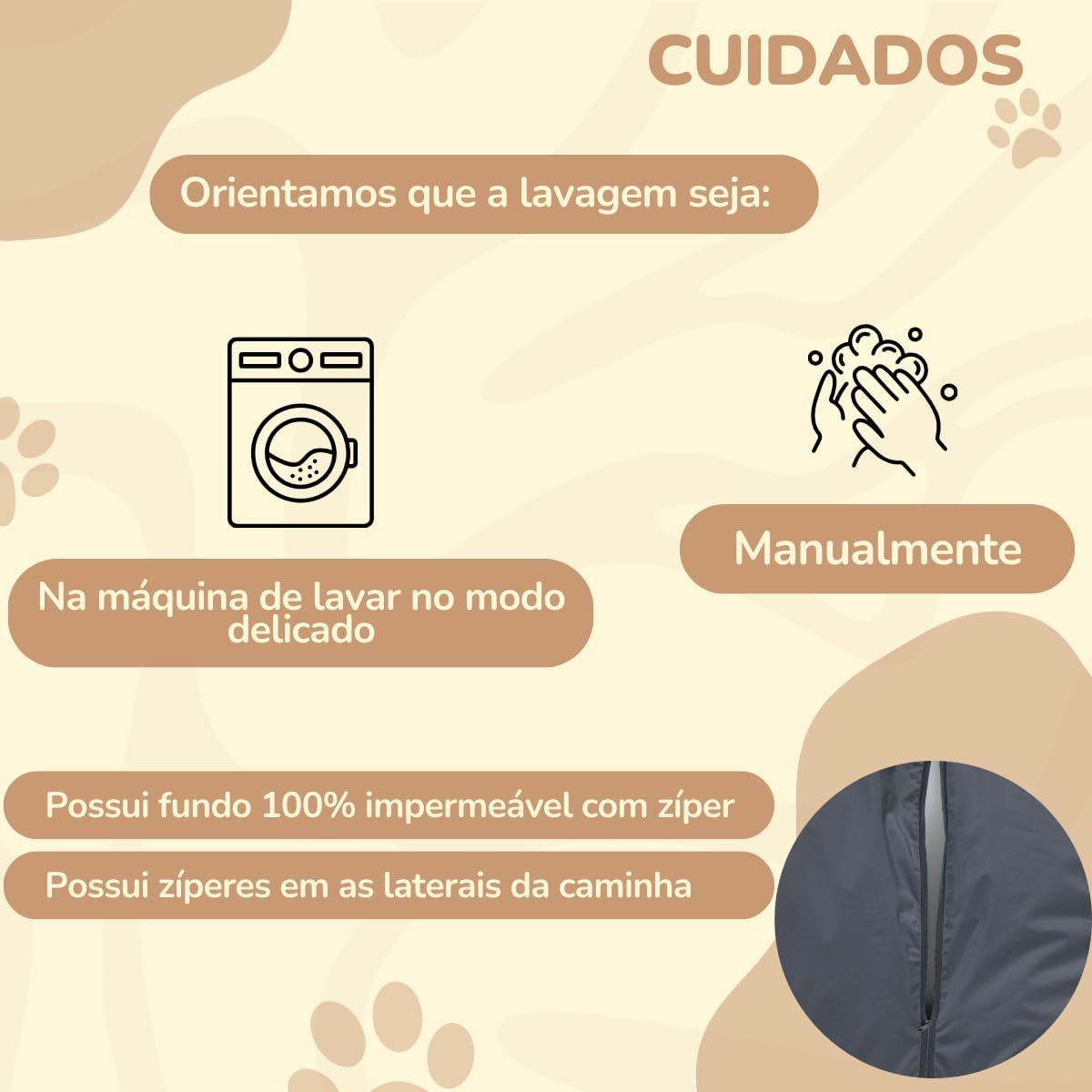 Sua característica única é o sistema de zíper em todas as laterais externas, além de um zíper no fundo, lado superior, que facilita a remoção e lavagem da capa. Recomendamos lavá-la em máquina de forma delicada ou manualmente, e secá-la à sombra para preservar