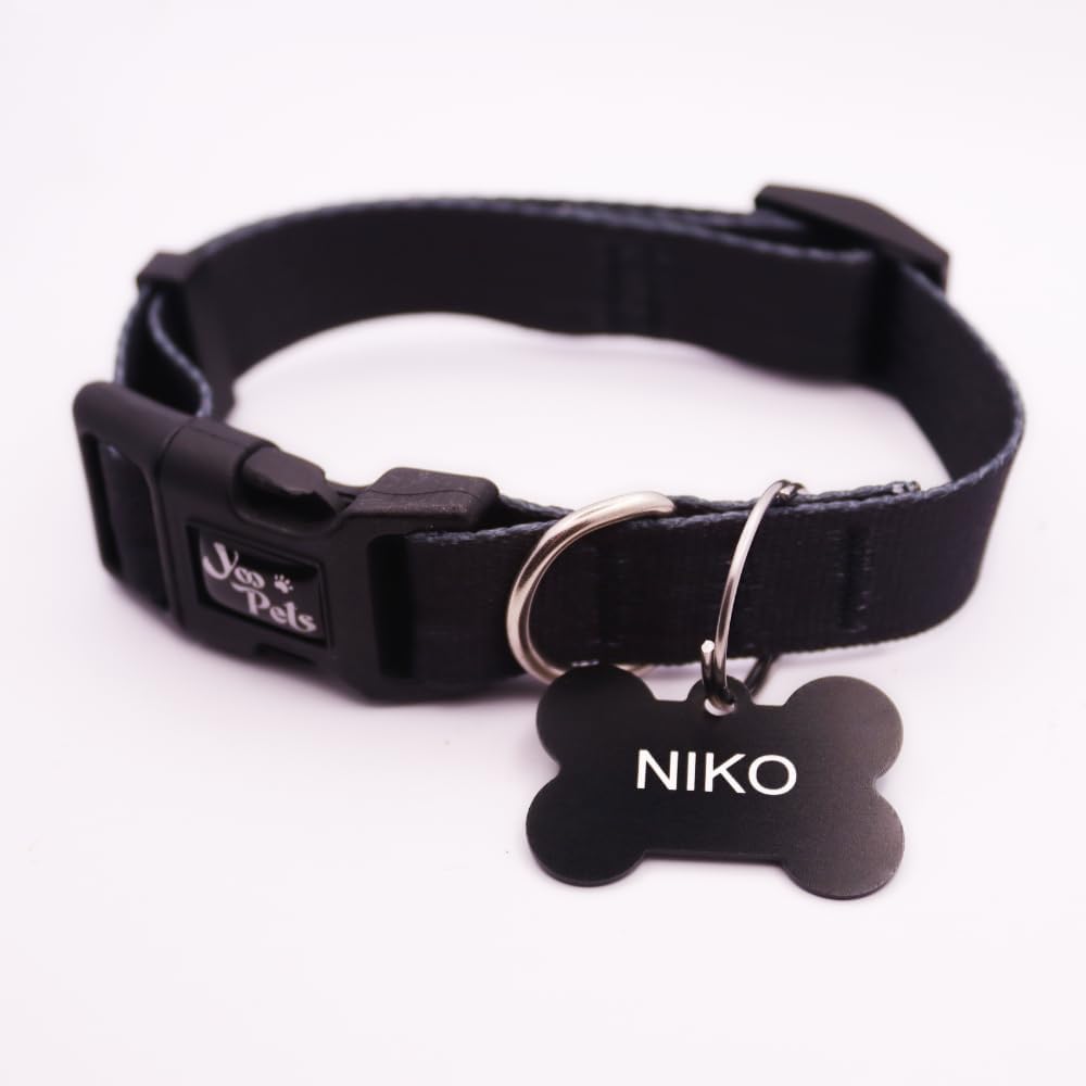 Coleira Yoo Pets Solid Black com Argola para Guia Descrição e Detalhes: Coleira Material: Poliéster resistente Fecho: Nylon com sistema de 4 travas Passador e Regulador: Nylon Resistente Regulável, para ajustar confortavelmente no pescoço do(a) cachorrinho(a) Meia Argola para Guia Placa de identificação ( Já vem personalizada, só nos enviar pelo chat os dados) : Material: Alumínio Anodizado Colorido ATENÇÃO: ENVIAR OS DADOS (NOME DO PET E TELEFONE COM DDD, NO CHAT APÓS A COMPRA) – Gravação do Nome na parte da Frente – Gravação do Contato do Tutor na parte de Trás (É possível gravar o nome do Tutor também) A plaquinha com nome e telefone tem como objetivo identificar que o doguinho possui dono e aumentar as chances de ele retornar ao lar caso esteja perdido e alguém o encontre. É recomendado uso contínuo pois imprevistos acontecem e não há dia e nem hora marcada para nossos bichinhos se perderem. * OS DADOS INFORMADOS SERÃO USADOS APENAS PARA A REALIZAÇÃO DA PERSONALIZAÇÃO DO PRODUTO * – Regulagem: Largura da fita tamanhos: PP (10mm ou 1,0cm) P (15mm ou 1,5cm) M e G (20mm ou 2 cm) Regulagem: PP (21 cm a 30 cm) / P (28 cm a 41 cm) / M (36 cm a 53 cm) / G (47 cm a 69 cm) – CONTEÚDO: 1 COLEIRA REGULÁVEL PARA GUIA / 1 TAG DE OSSO COM ARGOLAPAGAMENTOS EFETUADOS POR BOLETO DEMORA CERCA DE 2 A 3 DIAS PARA LIBERAR A ETIQUETA DE ENVIO. (POR FAVOR AGUARDEM ESTE PRAZO QUE É ESTABELECIDO PELA PLATAFORMA).