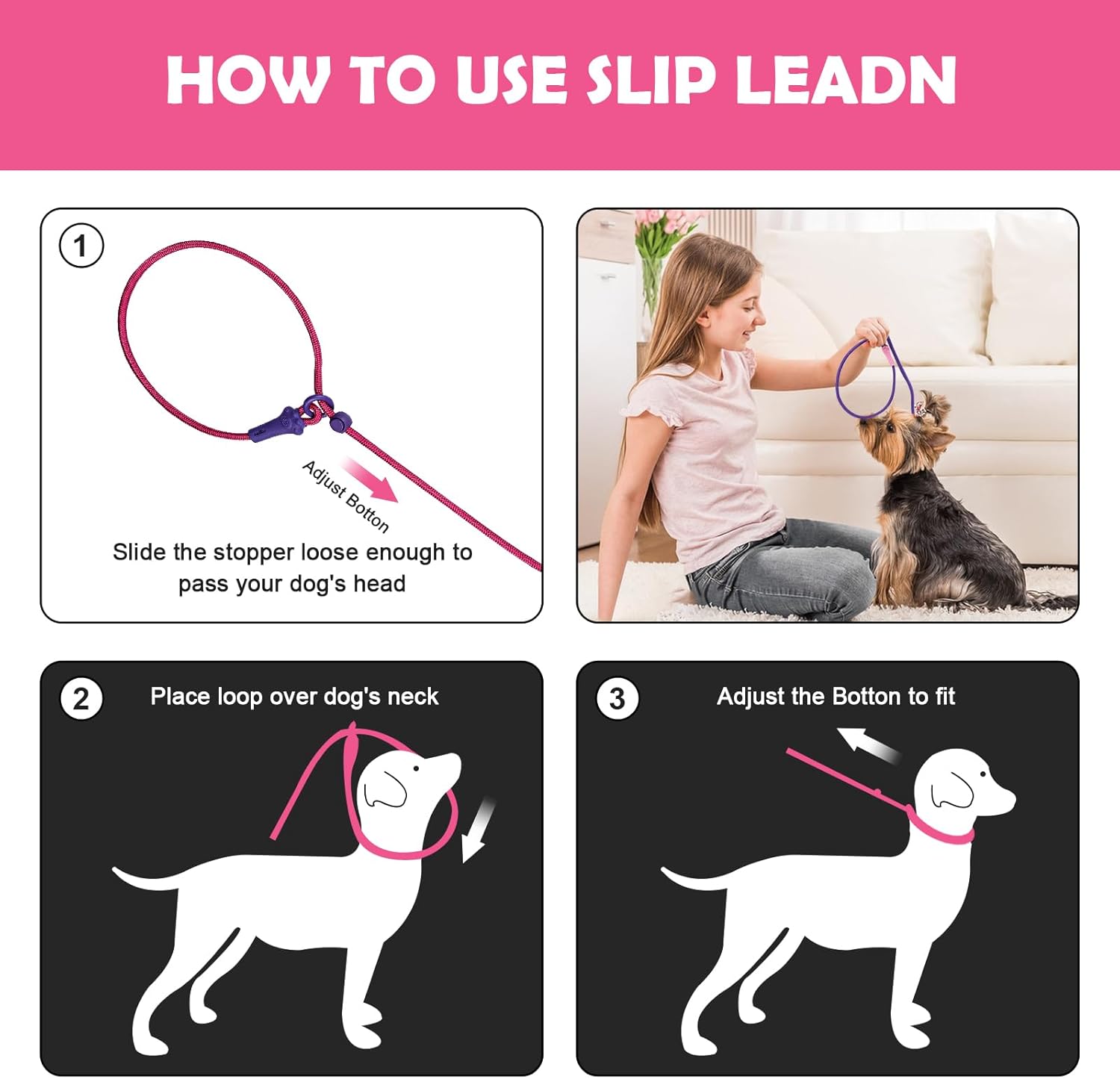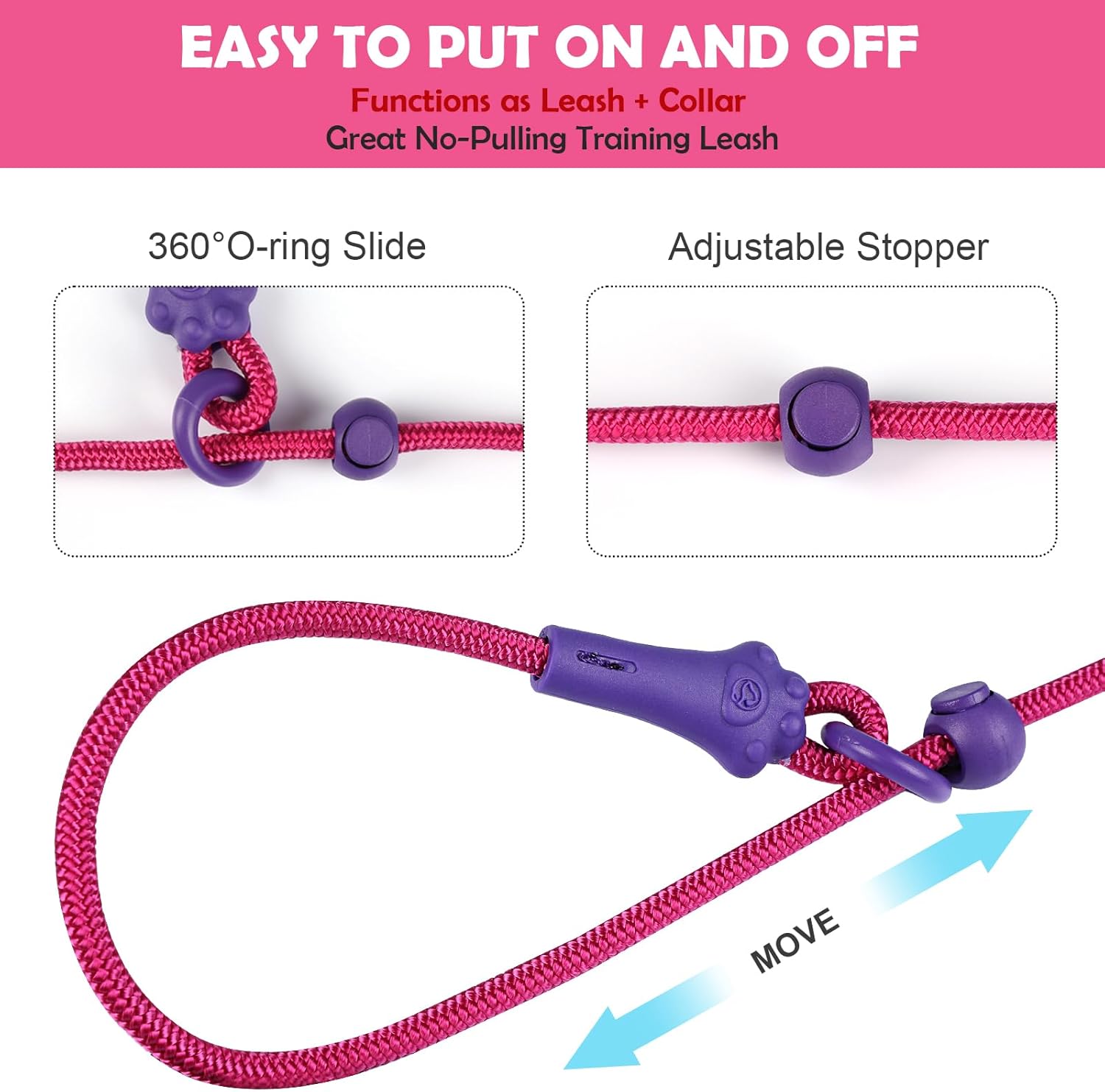 ✅ Confortável e ajustável – A guia deslizante de corda é uma coleira + coleira em um design conveniente, sem necessidade de coleira ou arreio, sem coleira para cães fácil de colocar ou tirar, simples e fácil de usar e confortável, confortável, amortecedores de plástico, deslizamento ajustável para caber em qualquer tamanho de pescoço, extremamente simples.