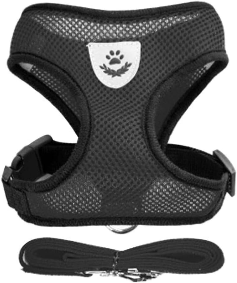 Coleira Peitoral com Guia Cães e Gatos Porte Pequeno a Médio Diversas Cores e Tamanhos (Preto, M)