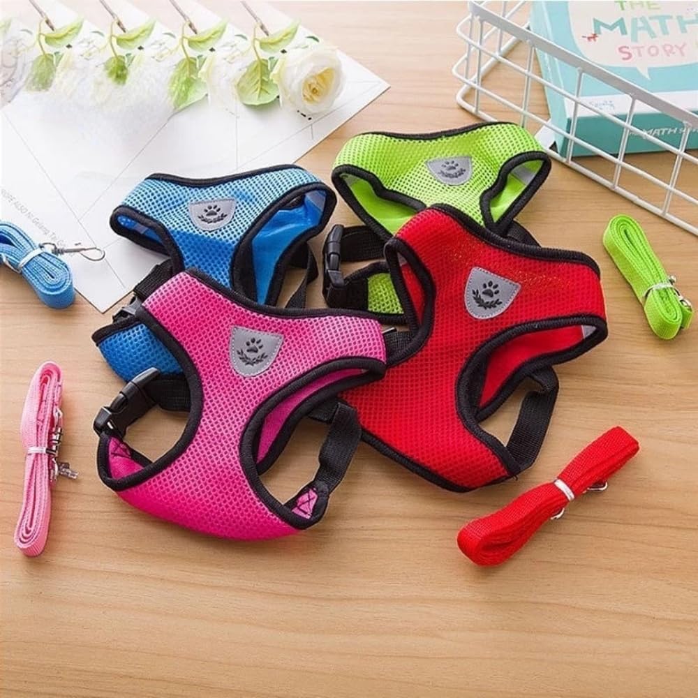 Coleira peitoral respirável é ideal para animais de pequeno porte, com peso variando de 6kg a 8,5kg. A coleira é fabricada em nylon de alta qualidade, sendo resistente e durável. Ela possui tiras refletivas que aumentam a visibilidade do seu cachorro durante a noite. A fivela de segurança impede que a coleira se abra acidentalmente. O produto inclui uma guia de 90 cm