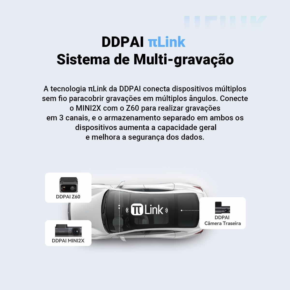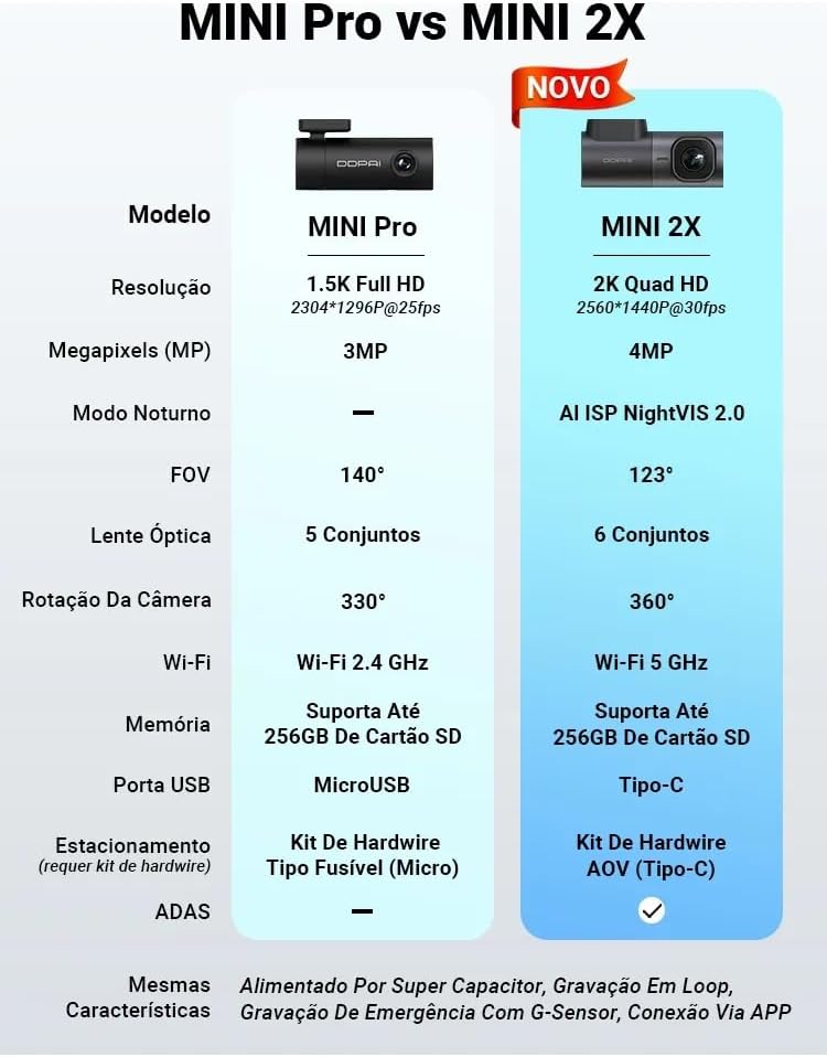 ** É necessário usar um cartão Micro SD com especificação U3 Class 10 ou superior. Recomendamos o uso do cartão SD da DDPAI (ASIN: B0DJ287X7Z, B0DJ27QY2S, B0FN7DF9PN). Não utilize cartões de outros fornecedores como “SanDisk Ultra” ou “Generic Class 10 for HD Video”. O uso de outros cartões de memória pode causar problemas de compatibilidade.