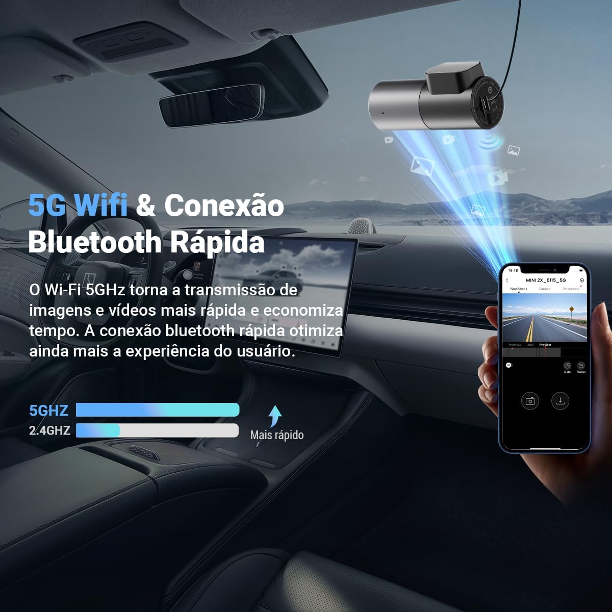 【Wi-Fi & App DDPAI (Android/iOS)】Câmera para carro com Wi-Fi permite acesso remoto via aplicativo. Visualize e compartilhe vídeos em tempo real, receba alertas de colisão e atualize o firmware facilmente. Compatível com cartão micro SD até 128GB (não incluso).