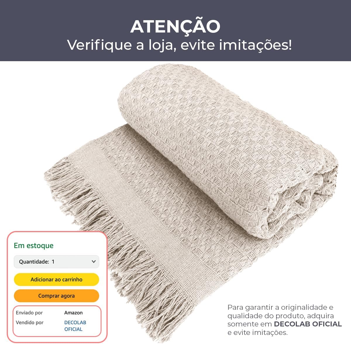 MANTA SOFÁ DECORATIVA DECOLAB Banner principal manta de sofá branco cruBanner principal manta de sofá branco cru