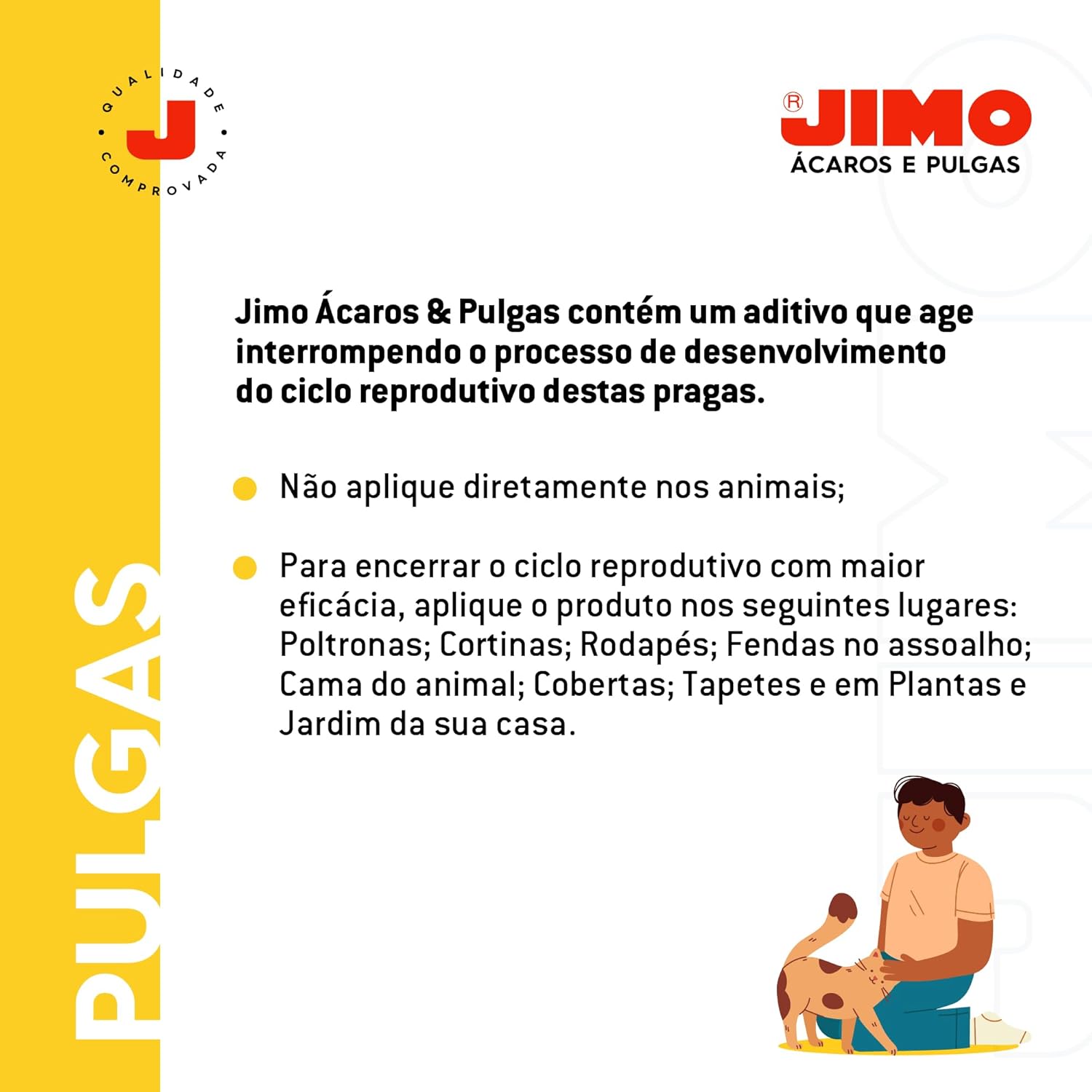 JIMO Ácaros & Pulgas é um produto especialmente desenvolvido para combater e controlar novas infestações de ácaros, pulgas e carrapatos.