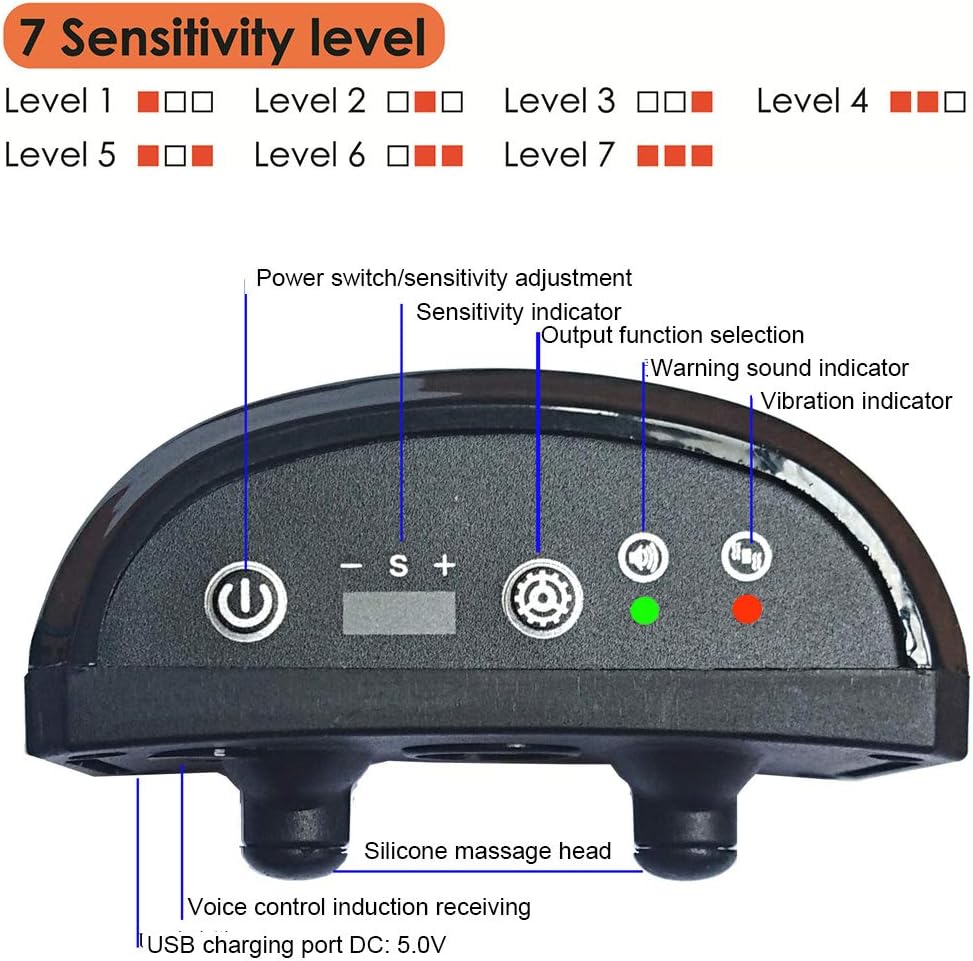 Com ajuste de sensibilidade de 7 níveis, é uma ferramenta eficiente de modificação de comportamento que ajudará você a treinar seu cão a latir menos. Este produto pode ser acionado continuamente por mais de 7 vezes em um minuto, e vai parar automaticamente o trabalho de proteção, de modo a evitar que se adapte a animais de estimação no início, e também evitar lesões.