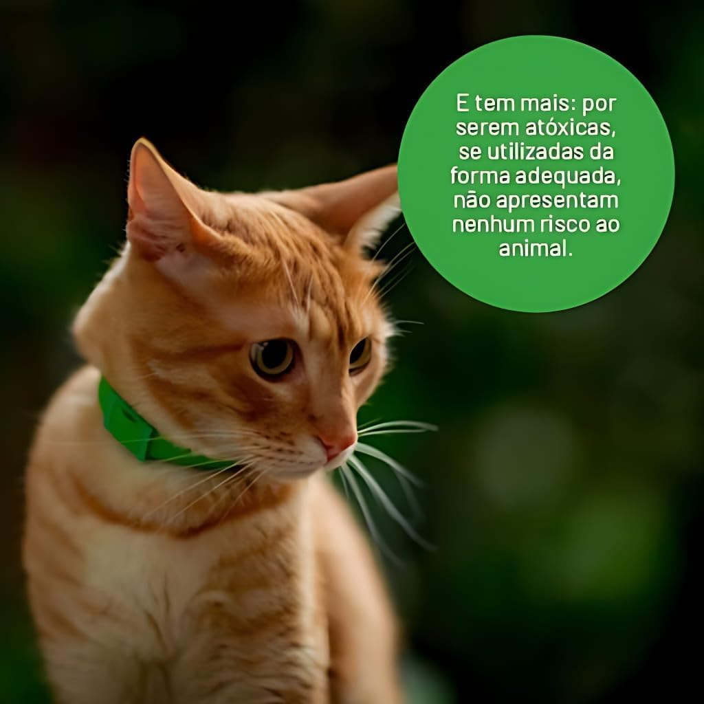 – Não causa alergia em animais e em pessoas ( Exceto em animais sensíveis à matriz plástica ou ao princípio ativo);