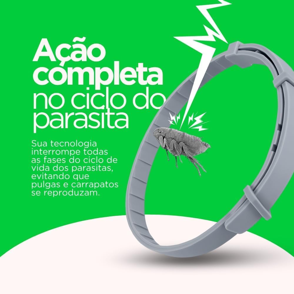🔹 8. EFICÁCIA COMPROVADA E RESULTADOS REAIS Testada e aprovada por especialistas, a coleira antipulgas e carrapatos apresenta alta eficácia no controle de infestações. Centenas de tutores já comprovaram seus resultados, relatando pets mais tranquilos, protegidos e com pelagem saudável e sem coceiras.
