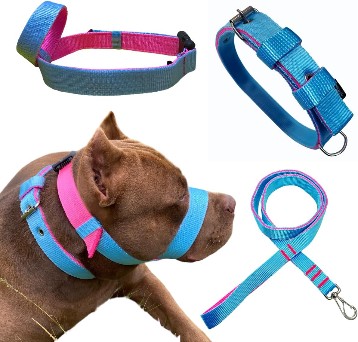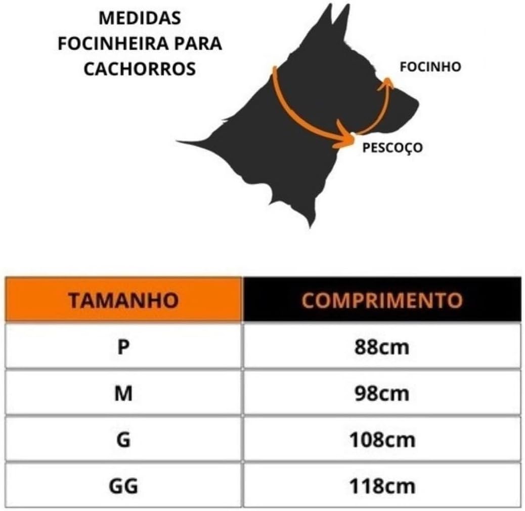 Super Kit Coleira + Focinheira + Guia 30mm- Dogvix Largura: 30mm. Cor: Preto/Laranja e Azul BB/Rosa. O kit contém: 1- Coleira 1- Focinheira 1- Guia ATENÇÃO: Confira as medidas conforme a circunferência do pescoço e do Focinho do seu cão. MEDIDAS: KIT (P) – Coleira – 41cm até 54cm – Focinheira – 88cm (FOCINHO + PESCOÇO) – Guia – 120cm KIT (M) – Coleira – 49cm até 60cm – Focinheira – 98cm (FOCINHO + PESCOÇO) – Guia 120cm KIT (G) – Coleira – PESCOÇO- 51cm até 64cm – Focinheira- 108cm (FOCINHO + PESCOÇO) – Guia – 120cm Produzida com 4 fita de polipropileno de 30mm, costuras triplamente reforçadas em zigzag. Metais de qualidade e resistência. O Kit Forte Dogvix, é um produto extremamente resistente, ideal para cães de médio e grande porte. Não recomendamos tamanho por raça/peso/idade do cão, pois apenas com as medidas tiradas é possível ter uma ideia do tamanho correto. Adquira já esse super kit e garanta os melhores passeios ao lado do seu amigo!