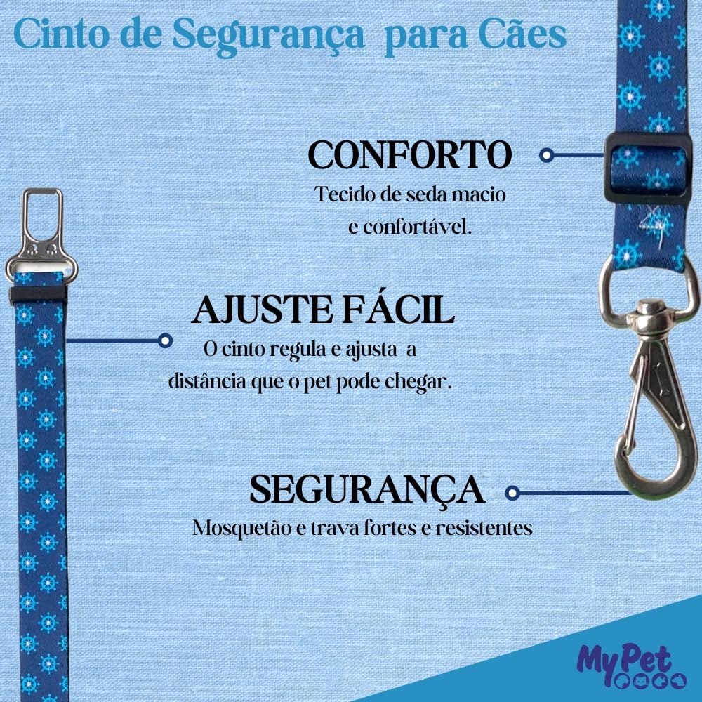 MY PET BRASIL Cinto De Segurança Para Cães 80Cm Regulável Adaptador De Carro Para Cachorros Guia Pet Transporte Viagem E Passeio Modelo Universal Estampa Stock