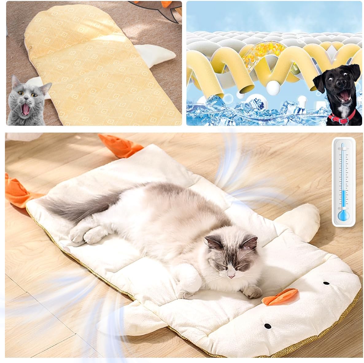 🧶 TECNOLOGIA DE AUTO-RESFRIAMENTO: Os cama pet de resfriamento para animais de estimação Python Fly são feitos com tecido de tecnologia avançada e fria na superfície. Ao contrário de outros tecidos gelados, esse cama para gato foi projetado para fornecer resfriamento superior sem exigir água, eletricidade ou refrigeração. Tecido fresco com fibra de alta qualidade. Todo cuidado para seus animais de estimação!